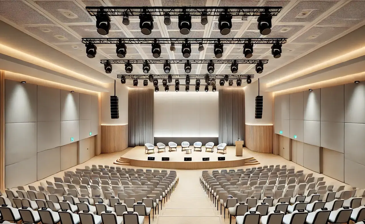 Otel, konferans salonu, açık alan ve sahne sistemleri için projelendirme, kurulum ve test hizmetleri.